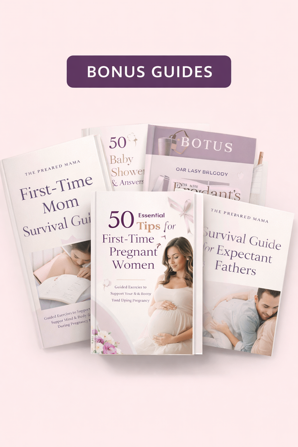 Your complete digital bundle with 3 essential e-books, pregnancy checklists, planners, and bonuses to guide you through every step.